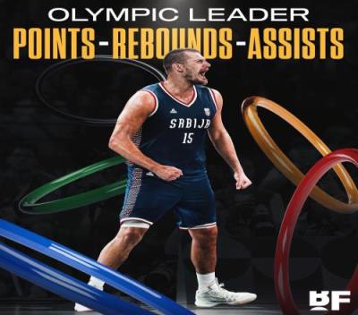 他本届赛事一共拿到113分64篮板52助攻,三项数据均为赛事最高,是奥运历史上首次。
