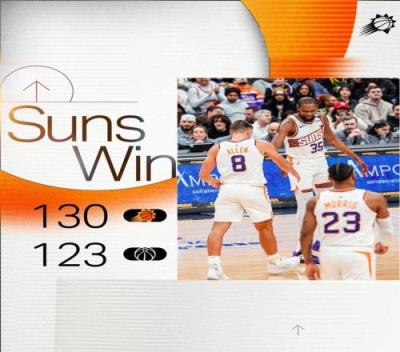 体育资讯1月17日报道宣称 NBA常规赛,太阳130-123战胜奇才。