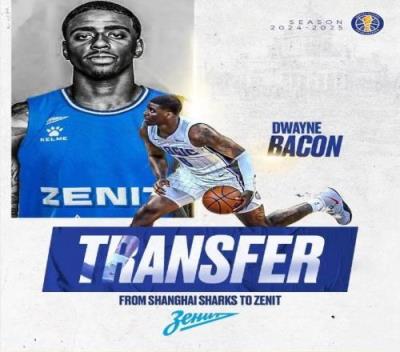 体育资讯8月8日报道宣 俄罗斯联赛俱乐部圣彼得堡泽尼特今天宣布,德维恩-培根正式加盟球队。这也意味着培根将告别CBA。