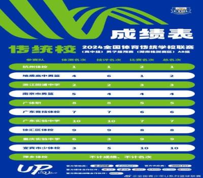 7月27日,2024 年全国体育传统学校联赛(高中组)男子组预赛在湖南株洲、山东潍坊顺利完赛,成绩及晋级队伍如下。