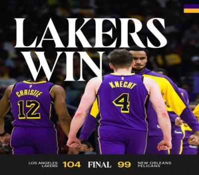 体育资讯11月17日报道宣称 NBA常规赛,湖人104-99战胜鹈鹕。
