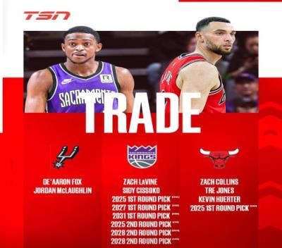 体育资讯02月03日报道宣称 名记Shams报道,消息源透露,多方交易正在敲定,福克斯去往马刺,拉文去往国王。