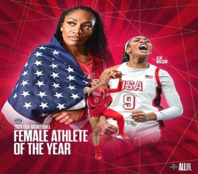 体育资讯1月30日报道宣称 今日美国男篮宣布,阿贾-威尔逊当选为2024年美国5人制篮球年度女运动员!