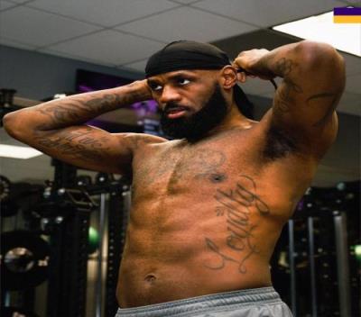詹姆斯提前三小时到达球馆训练,湖人官方晒出其训练照。