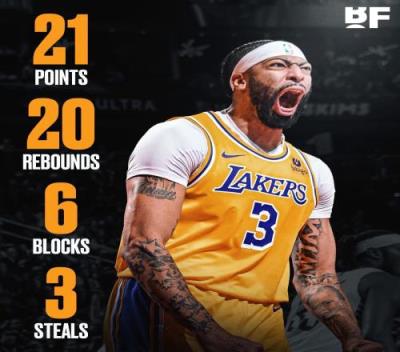 炸裂数据纪录没了!浓眉生涯第2次至少20+20+5帽但赛后被扣了2板