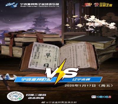 赛前宁波男篮官博晒出预热海报,在打开的《本草纲目》书籍中,缺少了“本纲”二字,与辽宁本钢谐音。