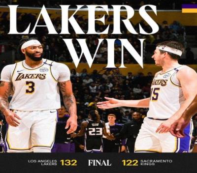 体育资讯12月29日报道宣称 NBA常规赛,湖人以132-122战胜国王。