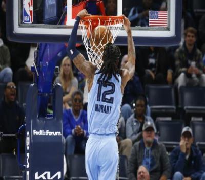 赛季至今,灰熊取得19胜9负的战绩,排名西部第二。