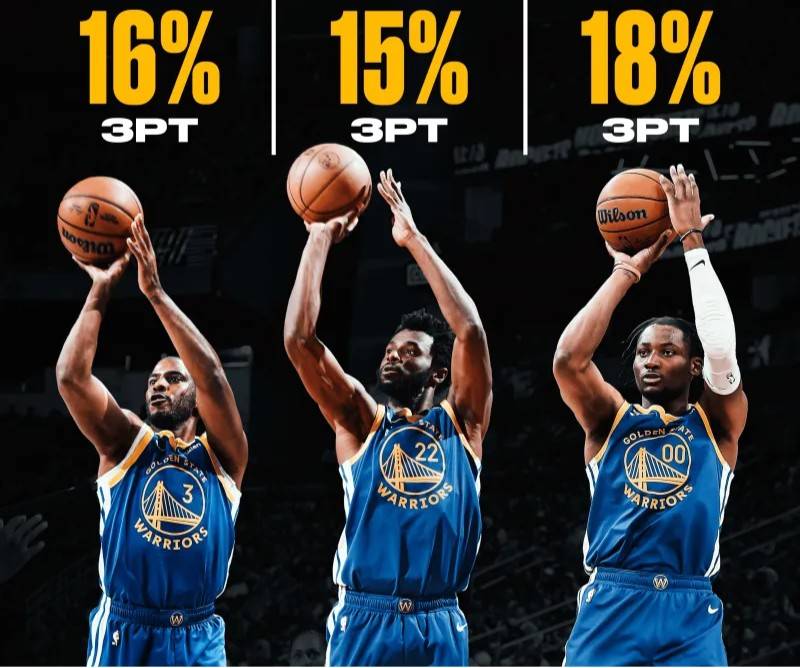 据美媒Basketball Forever的数据显示,勇士队主要得分手们本赛季的三分命中率令人担忧。球队并不气馁,教练组正积极研究战术方案,寻找打开外线投篮突破口的方法。