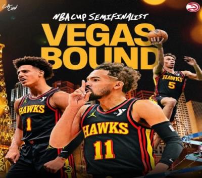 吹羊稳C位!老鹰官推晒赢球海报:NBA杯半决赛挺进拉斯维加斯