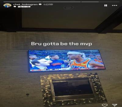 赛后,伤停中的切特-霍姆格伦发INS动态,晒出其观赛照片,同时写道:“兄弟(亚历山大),你就是MVP啊。”