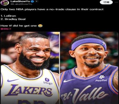 体育资讯01月09日报道宣称 今日湖媒发推惊叹:“现役只有两名球员有交易否决权,勒布朗、比尔。 他究竟是怎么得到这个权利的?”
