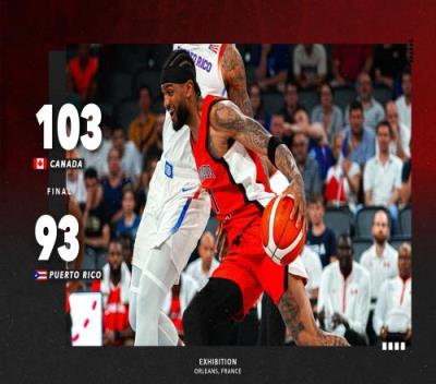 体育资讯07月22日报道宣称 在今天凌晨结束的一场巴黎奥运会男篮热身赛中,加拿大以103-93击败波多黎各。