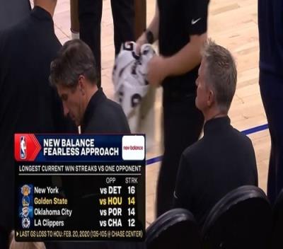 值得一提的是,勇士对火箭这一连胜纪录并不是联盟现存最长——尼克斯目前对活塞保持16连胜(上一次尼克斯输给活塞是2019年11月7日)。