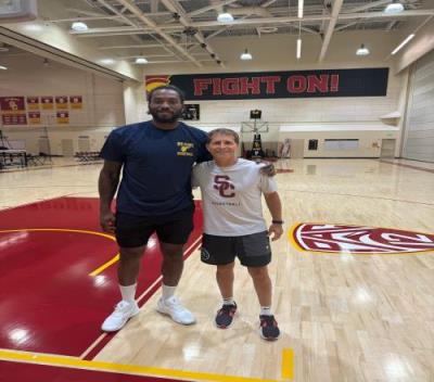 南加大主帅晒照:今天和六届全明星&快船球星小卡一起训练太棒了