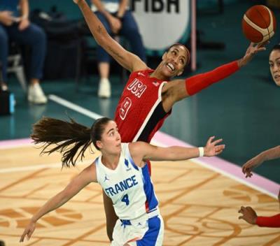 文班都嗨了!奥运女篮决赛:福图Logo三分压哨轰进法国2323美国