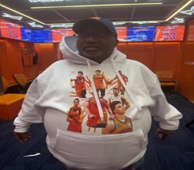 昨天打完比赛在更衣室碰到了洛夫顿的爸爸,简单聊了几句,他表示一家人都非常喜欢上海这座城市,也很感谢这么多球迷对洛夫顿的喜爱。洛夫顿爸爸真是一个非常非常nice的人,他非常为自己的儿子骄傲,主动介绍说身上这件卫衣是自己找地方去印制的,特意穿着来现场支持上海队。
