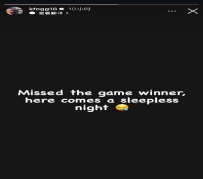值得一提的是,弗格最后一攻三分被防住。赛后,他更新社媒表示:“投丢了制胜球,失眠了。”