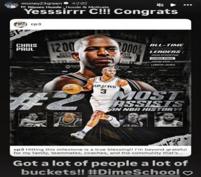 前队友追梦格林在INS祝贺保罗,他写道:“Yesssirrr克里斯!恭喜!你帮很多人得了很多分!!”