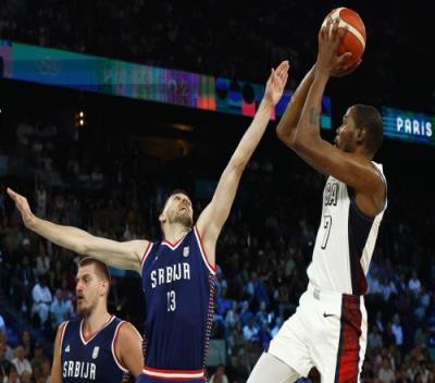 体育资讯8月9日报道宣 巴黎奥运会男篮半决赛,美国95-91险胜塞尔维亚,进入决赛。