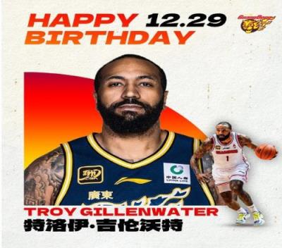 体育资讯12月29日报道宣称 今天是广东外援吉伦沃特的36岁生日,广东男篮官博送上了生日祝福。