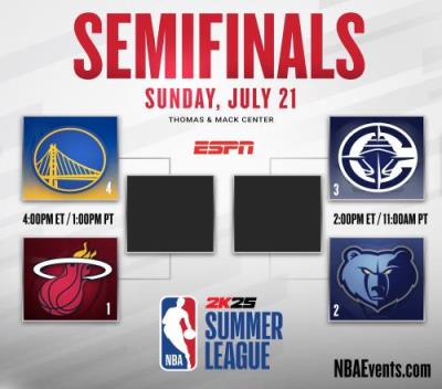 体育资讯07月20日报道宣称 NBA拉斯维加斯夏季联赛,半决赛的四支球队正式出炉:热火、灰熊、快船、勇士。