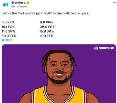 体育资讯7月19日报道宣称 今日美媒StatMuse晒出了夏季联赛至今、榜眼萨尔和55号秀布朗尼的场均数据对比: