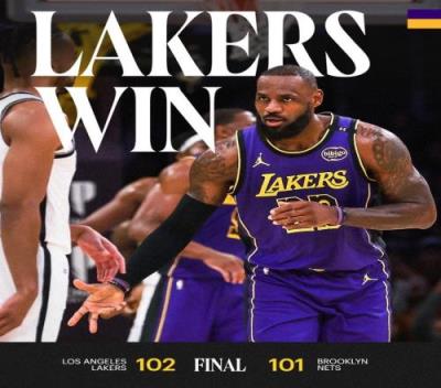 体育资讯1月18日报道宣称 NBA常规赛,湖人主场102-101险胜篮网。