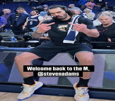 灰熊随队记者Lang Whitaker晒照欢迎亚当斯重回孟菲斯,后者手势吸睛