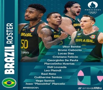 体育资讯7月25日报道宣称 巴西男篮公布奥运12人大名单,NBA旧将卡波科洛和费利西奥领衔,41岁老将、湖人旧将胡尔塔斯在列。