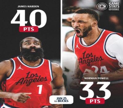 昨天哈登40分&鲍威尔33分!快船官推晒照:数据不会说谎
