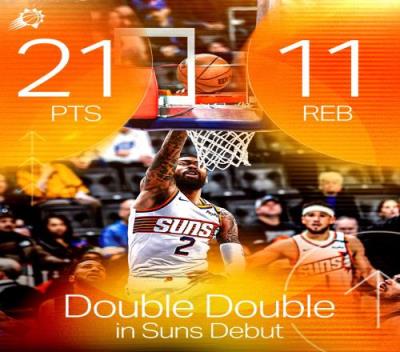 官方表示,理查兹成为太阳队史首位首秀替补单场至少拿下20分10篮板的球员。