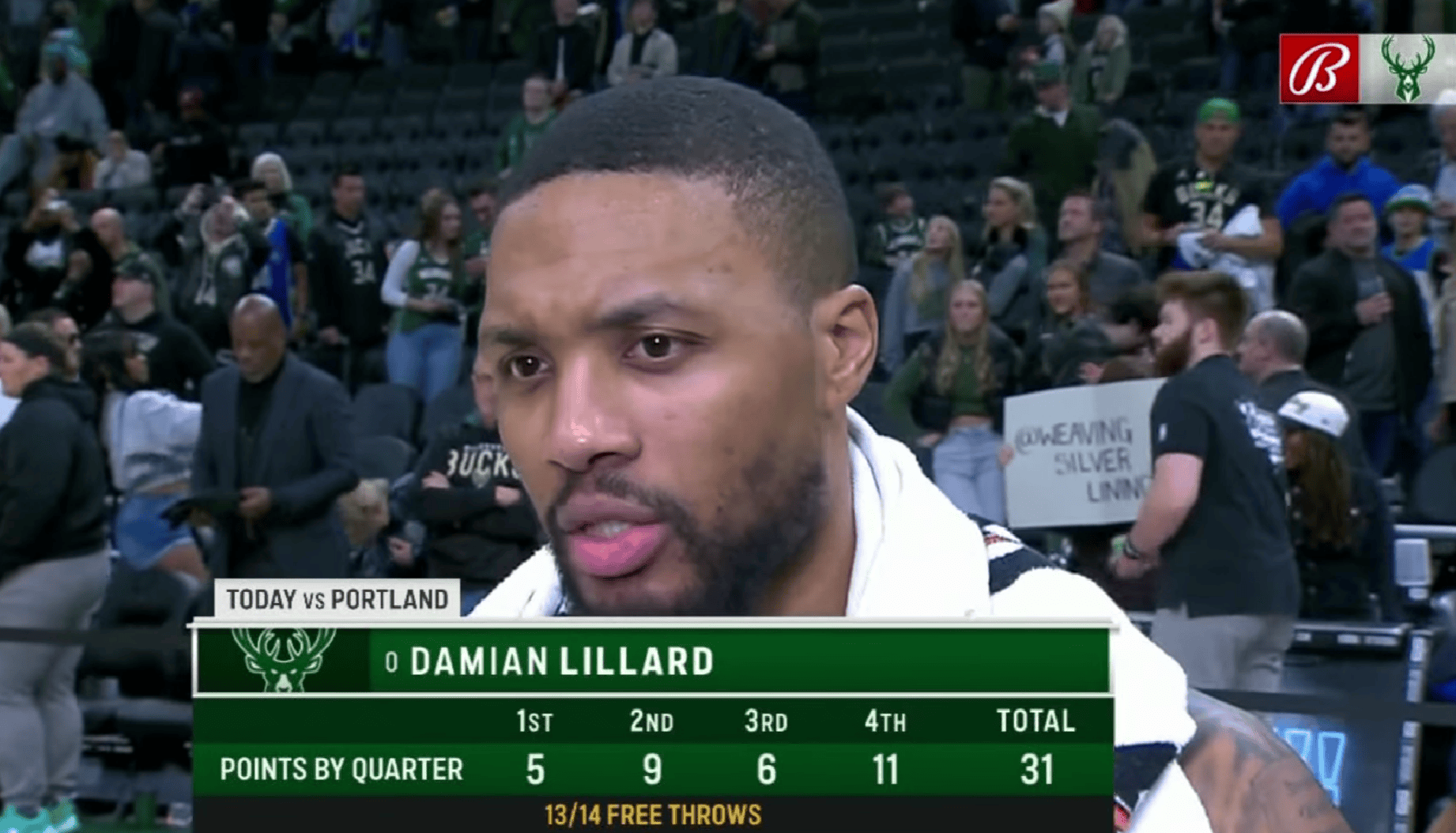 利拉德在这场比赛中打出了全场最亮眼的表现。他出场37分钟,21投7中,其中三分球12投4中,罚球14投13中,独得31分,同时贡献5个篮板、4次助攻和2次抢断。他展现出了出色的得分能力、决策能力和无解的投篮技巧,使开拓者的防线束手无策。
