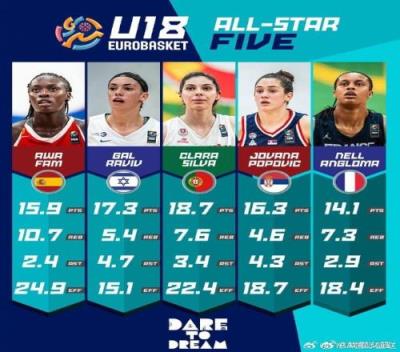 赛事最佳阵容:阿瓦-法姆,加尔-拉维夫,克拉拉-席尔瓦,约瓦娜-波波维奇,内尔-安格洛马。
