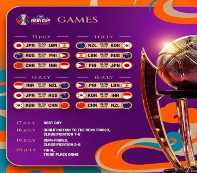 日本队、澳大利亚队、菲律宾队和黎巴嫩队被分在B组。赛会的决赛将于7月20日打响。