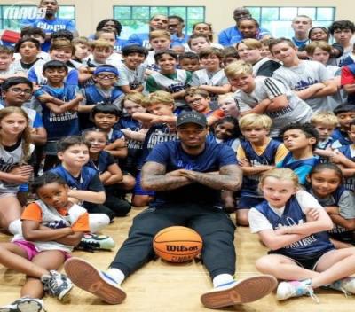 火出圈的动作!PJ华盛顿参加训练营与小学员抱臂合影