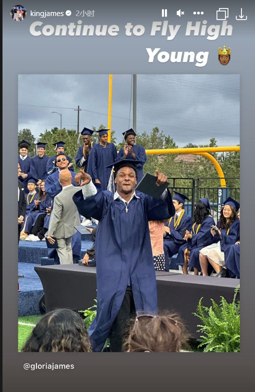 5月26日讯 詹姆斯的大儿子布朗尼今天迎来了高中毕业典礼。