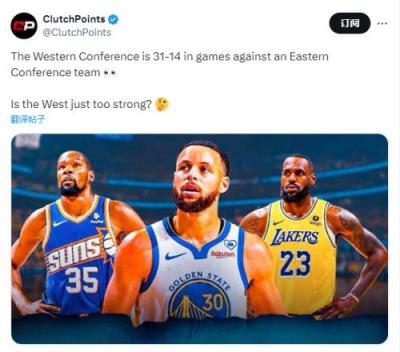 本赛季至今,西部联盟球队对阵东部联盟球队战绩是31胜14负,西部是否太强大了?