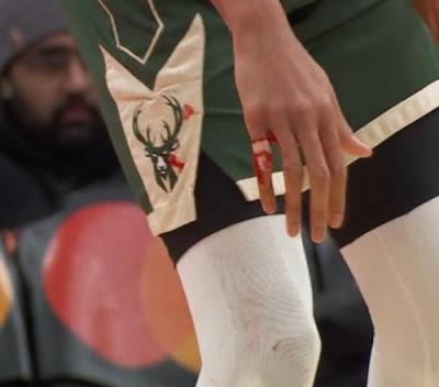太拼了!字母哥的小拇指疯狂爆血但他换了条绷带继续打