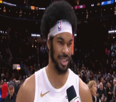 赛后,阿伦接受了场边采访,但米切尔偷袭,给阿伦浇水。