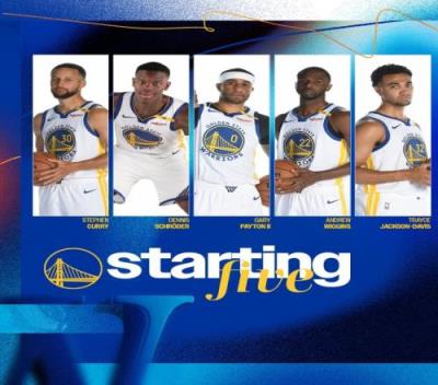 本场比赛追梦缺战,勇士赛前公布了本场比赛首发阵容:库里、施罗德、维金斯、佩顿二世、TJD。