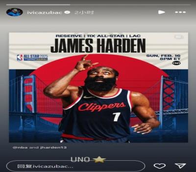 老大哥哈登入选全明星!祖巴茨转发相关动态:UNO