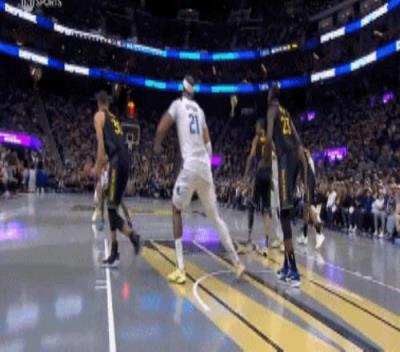 按照常理来讲,追梦是站在合理冲撞区里面,他没有做到垂直起跳,加福德也没有过激的动作,按照规则,这球应该妥妥的是追梦犯规。但是!