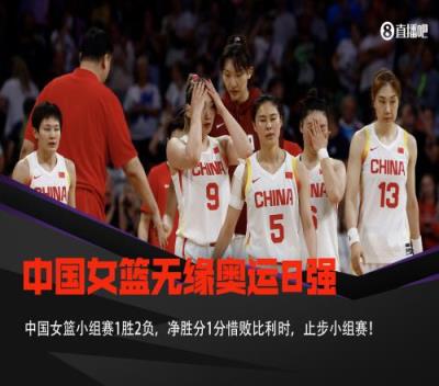 中国女篮小组赛1胜2负,在净胜分上1分惜败比利时女篮,后者晋级8强。