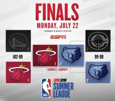 如此一来,灰熊和热火成功在今年夏季联赛决赛上会师。