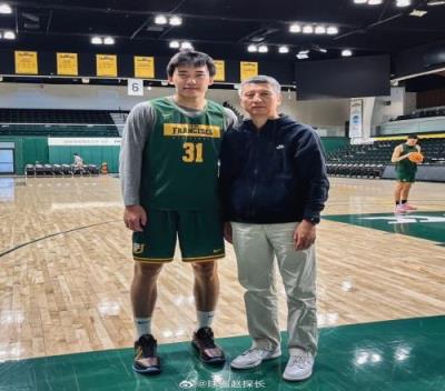中国男篮主帅郭士强现场观看王俊杰比赛赛后两人合影留念
