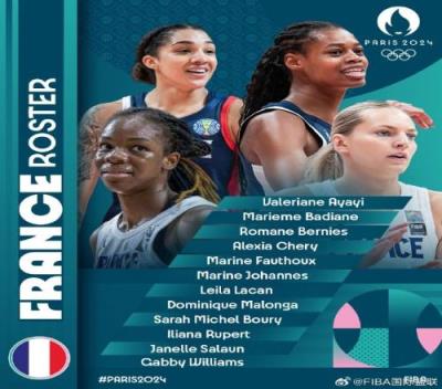 法国女篮公布奥运会12人名单:马琳约翰内斯&加比威廉姆斯领衔