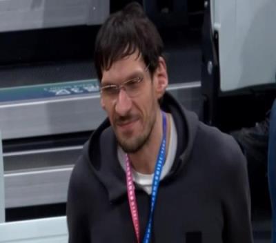 赛前转播方捕捉到出现在场边的广厦新援博班,他今天没有进入名单。