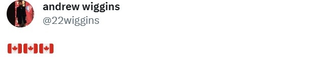 9月5日消息,NBA球星安德鲁-维金斯在社交媒体Twitter上发布了加拿大国旗,为即将参加世界杯四分之一决赛的加拿大男篮加油打气。他的这一动作获得了大量网友和球迷的点赞。