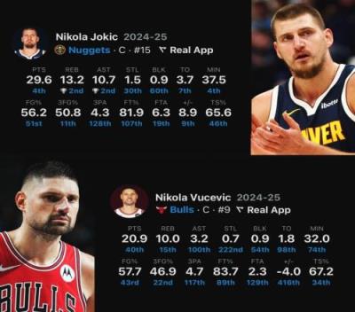 体育资讯12月03日报道宣称 美媒晒数据,本赛季目前只有两位球员在场均命中2记三分,命中率55%以上,三分45%以上的情况下场均20+10:约基奇和武切维奇。